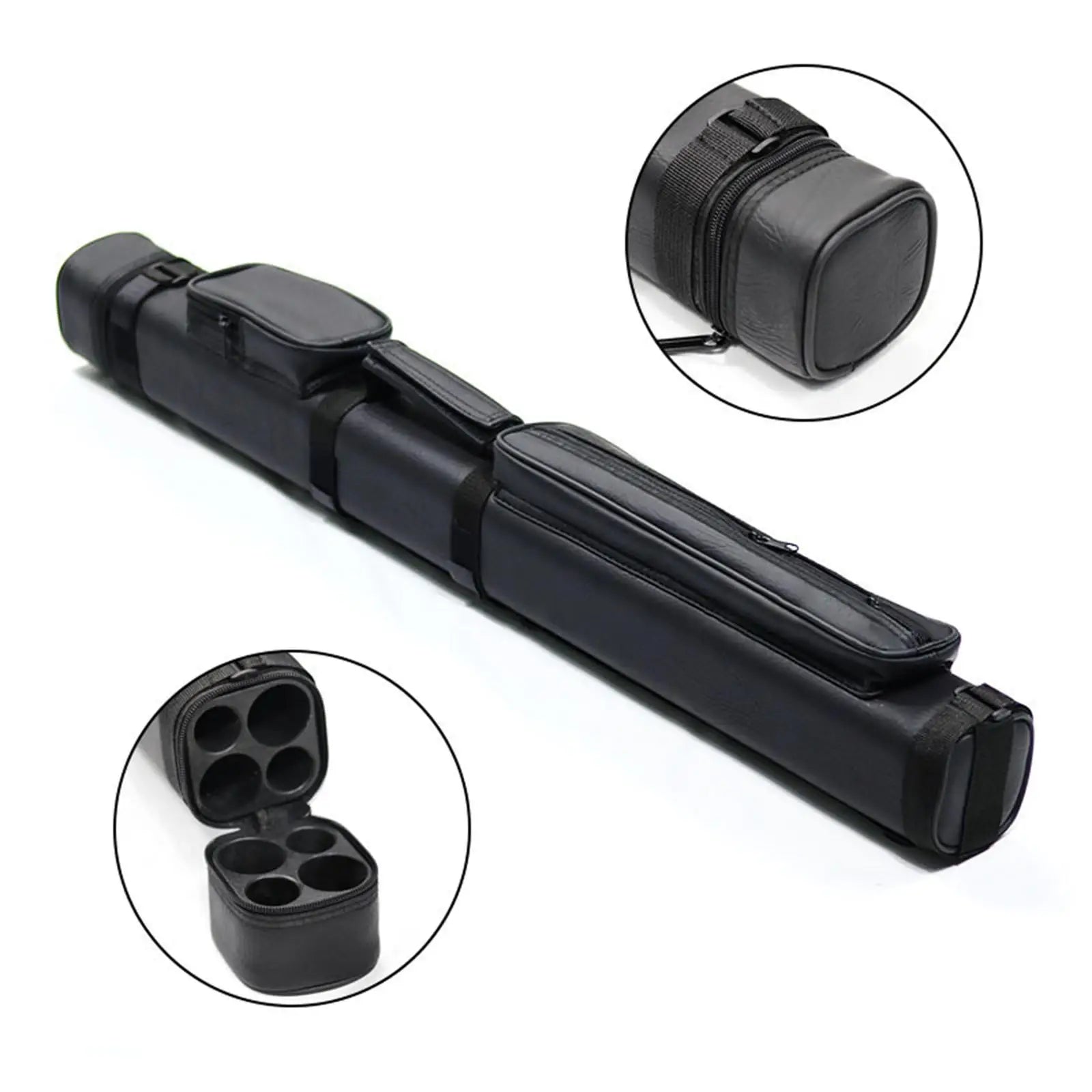 - The two zippered pockets of the pool cue case make it easy for storing and carrying weight butt, joint protector, tips, chalk, bridgehead, and more cue accessories.