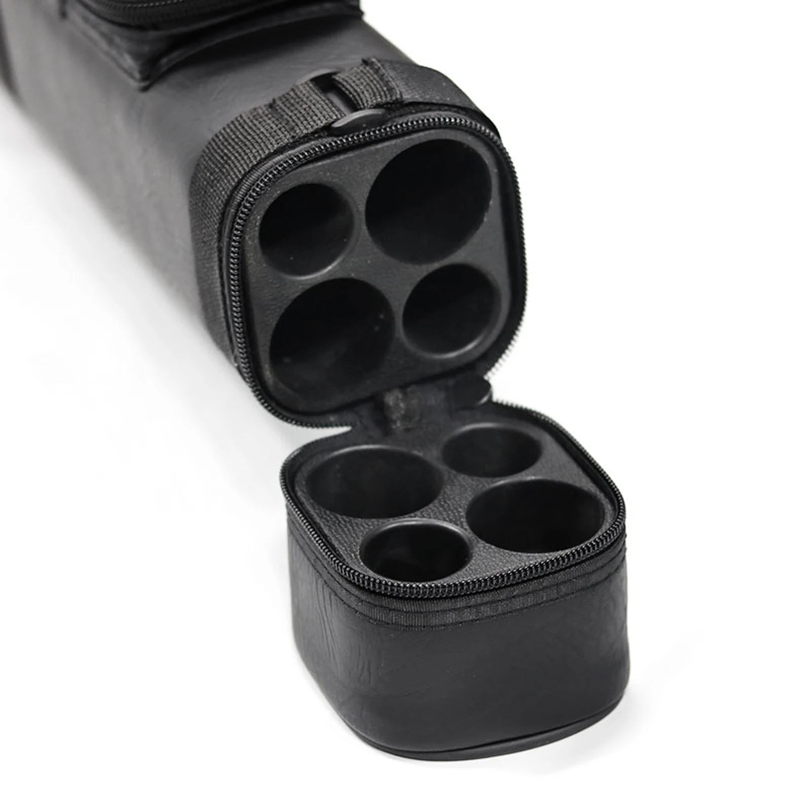 - 4-hole pool cue case will hold a standard 2x 1/2 cue with side pockets.